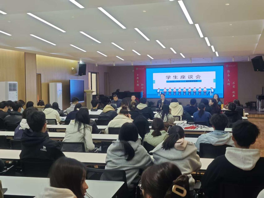 11 月 26 日,学院在 K125 多功能厅召开期中教学检查学生座谈会。学院领导、各系及教研室负责人与各年级学生代表围绕学风建设、学院发展及学习生活等问题进行深入交流。