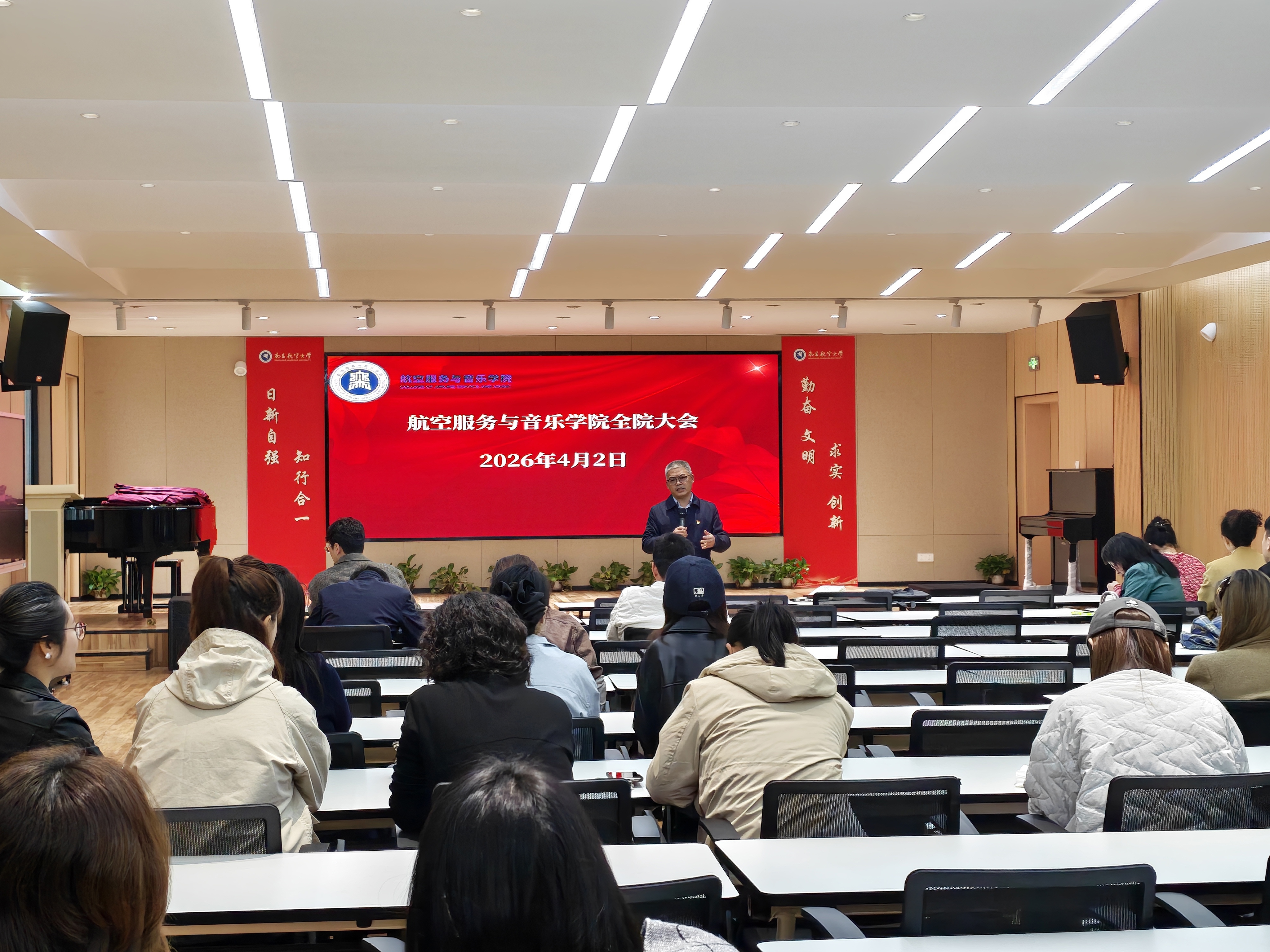 2026年4月2日,航空服务与音乐学院在教学楼K栋125召开全院教职工大会。学院党委书记徐武俊主持会议,全体教职工参加会议。